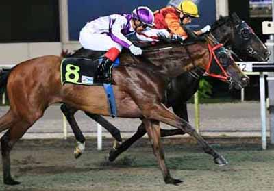 After settling just behind the pace, RUM N RAISINS (Sam Subian) had to