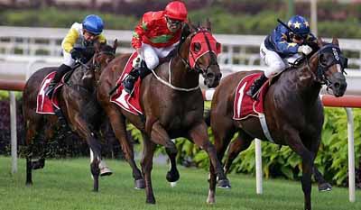the S$800,000 Lion City Cup here today, giving trainer Shane Baertschiger