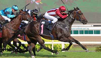 to land a gutsy win in the Kranji Stakes C event over 1200m at Kranji here